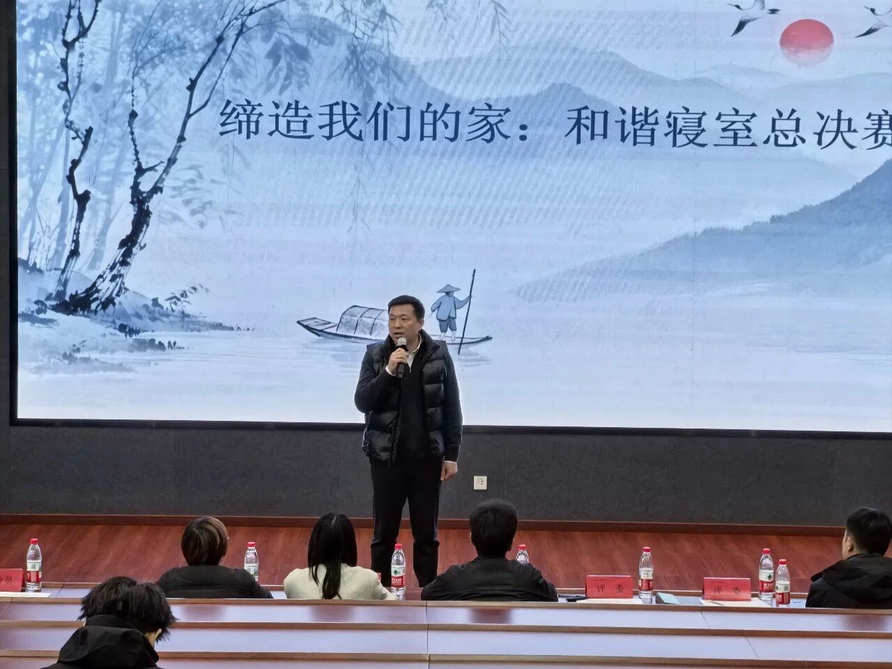 活动伊始,宿管科刘老师登台致辞。他提到,寝室是同学们在校期间的“第二个家”,见证着从陌生到默契的成长,承载着青春里最珍贵的同窗情谊。他希望通过此次活动,让每一个寝室都成为有温度、有规矩、有凝聚力的集体,也祝愿同学们在湖北孝感美珈职业学院这个“大家庭”里,于各自的“寝室小家”中收获温暖与成长。致辞完毕,校级决赛正式拉开帷幕!