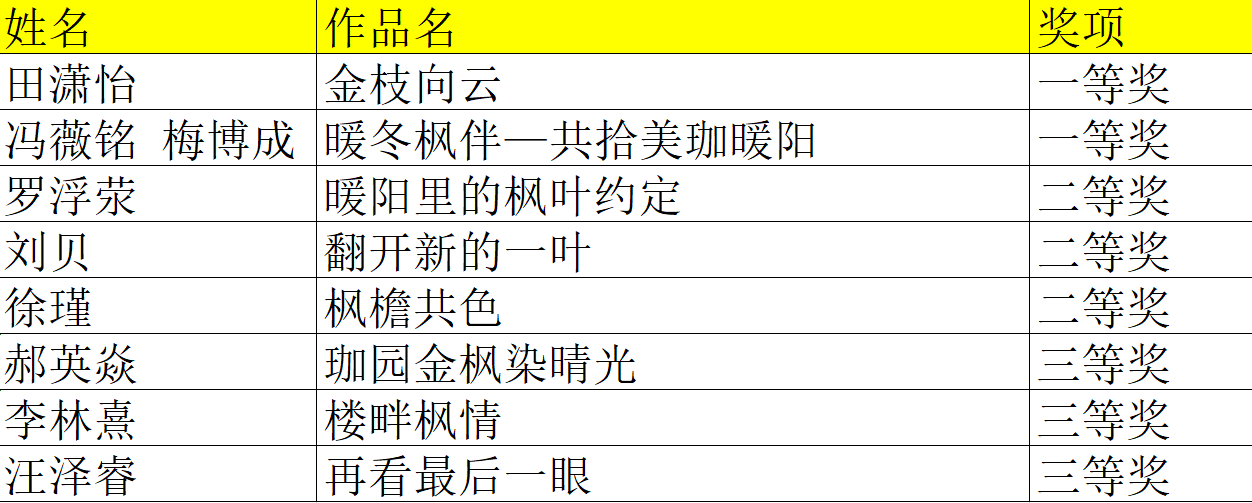 为捕捉校园元气风采,定格枫叶季的独特韵味,丰富课余文化生活,激发师生艺术创作热情,由宣传部、学生社团管理部、摄影社联合主办了“枫染校园·艺韵定格”摄影与枫叶创意作画大赛。